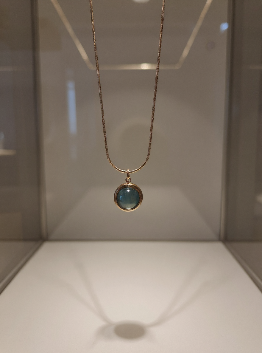 Materials: Gold-tone finish, high-quality blue opal-like stone, and a durable chain. Care: To maintain its shine, avoid contact with water, perfumes, and other chemicals.